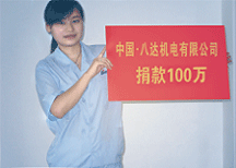 Operating legally, dedicating on public welfare and actively participating in “Cause of Glory” expanding employment and reemployment, helping poor people are as our social responsibility. In 2006 and 2007, Bada has donated more than RMB 1 millon yuan to the Red-cross organization, Huling Town, Armed police, Feiyun Town and Local association of elderly. On May 12, 2008, the entire company donate RMB 200000 yuan to the people suffered the earthquake in Wenchuan.